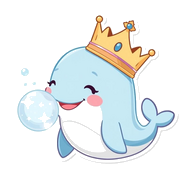 Rule your day with style in this funny whale t-shirt, featuring a crowned whale blowing a magnificent sparkly bubble.